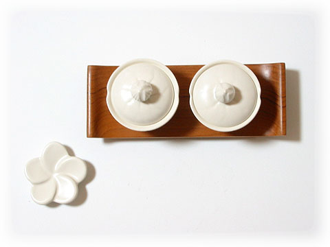 | 先日はあまりに素敵なので思わず買い足してしまいました。ロータスのプレートはデザインだけでなく機能性に優れています。さすがです。調味料入れも可愛らしく気に入っています。 |
